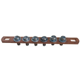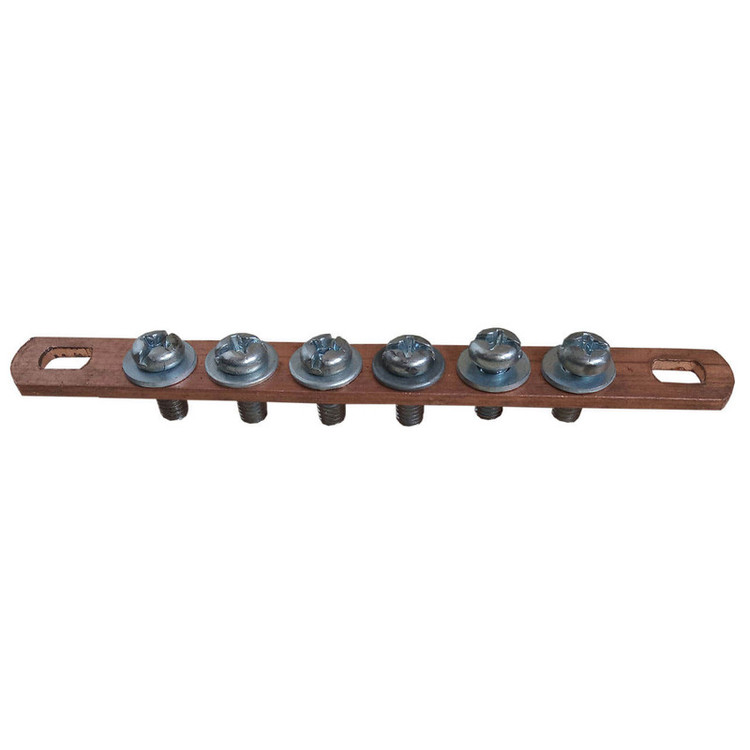 شمش مسی 6 پیچ نول در تابلوی برق جهت هدایت جریان الکتریکی به قطعات مختلف داخل تابلو استفاده می شود . مزیت شینه های مسی نسبت به کابل انشعاب گیری راحت تر با ایجاد سوراخ روی شینه و با کمک پیچ و مهره می توان براحتی از شینه انشعاب گرفت و نیازی به ترمینال و وسایل دیگر نمی باشد و هدایت جریان الکتریکی بهتر با توجه به اینکه عبور جریان الکتریکی از سطح هادی انجام می گیرد، در یک سطح مقطع مشابه در کابل و شینه محیط شینه بیشتر از کابل است و لذا هدایت الکتریکی شینه بهتر از کابل می باشد و زیبایی خاص شینه به جهت داشتن استحکام بیشتر نسبت به کابل و تعویض راحتتر شینه معیوب نسبت به کابل معیوب میباشد