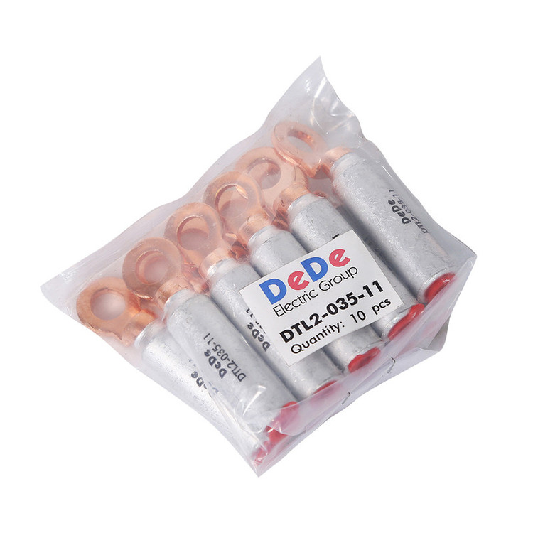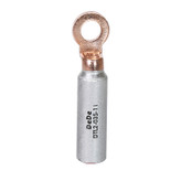 این نوع کابلشو ها جهت اتصال کابل آلومینیومی به شینه های مسی فشار ضعیف و یا بوشینگ انواع تجهیزات فشار متوسط (کلید ها، ترانسفورماتور ها، …) از طریق پیچ و مهره استفاده می شود. جهت استفاده از این نوع کابلشو بیمتال، کابل آلومینیومی داخل لوله ورودی کابلشو بیمتال شده و به بوسیله ابزار پرس مناسب با سایز دای مرتبط با سایز کابل، پرس می گردد. سپس سوراخ کابلشو در قسمت ورودی و رزوه دار شینه مسی یا بوشینگ قرار گرفته، و به واسطه پیچ و مهره محکم می گردد. لوله ورودی این کابلشو ها، آغشته به گریسی مخصوص با مقاومت دمایی بالا می باشد تا علاوه بر جلوگیری از اکسید شدن آلومینیوم، اتصال الکتریکی کابل به لوله ورودی کابلشو بیمتال را بهبود بخشد. لوله ورودی کابلشو توسط درپوش پلاستیکی مسدود شده است تا گریس به بیرون از لوله تراوش ننماید. تکنولوژی اتصال مس به آلومینیوم، “جوش اصطکاکی” می باشد. در کابلشو بیمتال های DeDe Electric Group ، قبل از سوراخ کاری قسمت آلومینیومی و فورج و پانج سر مسی، جوش اصطکاکی ایجاد می گردد و پس از آن مراحل سوراخ کاری، فورج، پانچ، … صورت می گیرد. با توجه به این فرآیند تولید، اتصال نا گسستنی مس به آلومینیوم کابلشوی تولید شده نهایی تضمین شده است، زیرا اتصالات سست در حین پروسه های پس از جوش اصطکاکی، خود به خود نمایان و از چرخه تولید حذف می گردند. این کابلشو ها در سایز های مختلف، جهت ورودی کابل آلومینیومی از سطح مقطع ۱۶ الی ۵۰۰ میلیمتر مربع عرضه می گردد. بر روی کابلشو ها، سایز کابل ورودی به کابلشو بیمتال بر حسب میلیمتر مربع، و قطر سوراخ کابلشو بر حسب سایز پیچ متریک در استاندارد ISO درج شده است.