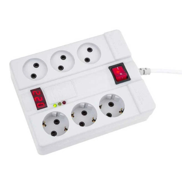 محافظ 6 خانه دیجیتالی پارت الکتریک با کابل 3 متری مدل PE2060 دارای مغزی سرامیکی با کیفیت بالا و نمایشگر دیجیتال روی بدنه است. همچنین جهت نمایش وضعیت اتصال ، علاوه بر نمایشگر ولتاژ ، سه چراغ LED به رنگهای زرد، سبز و قرمز، روی صفحه آن تعبیه شده است .