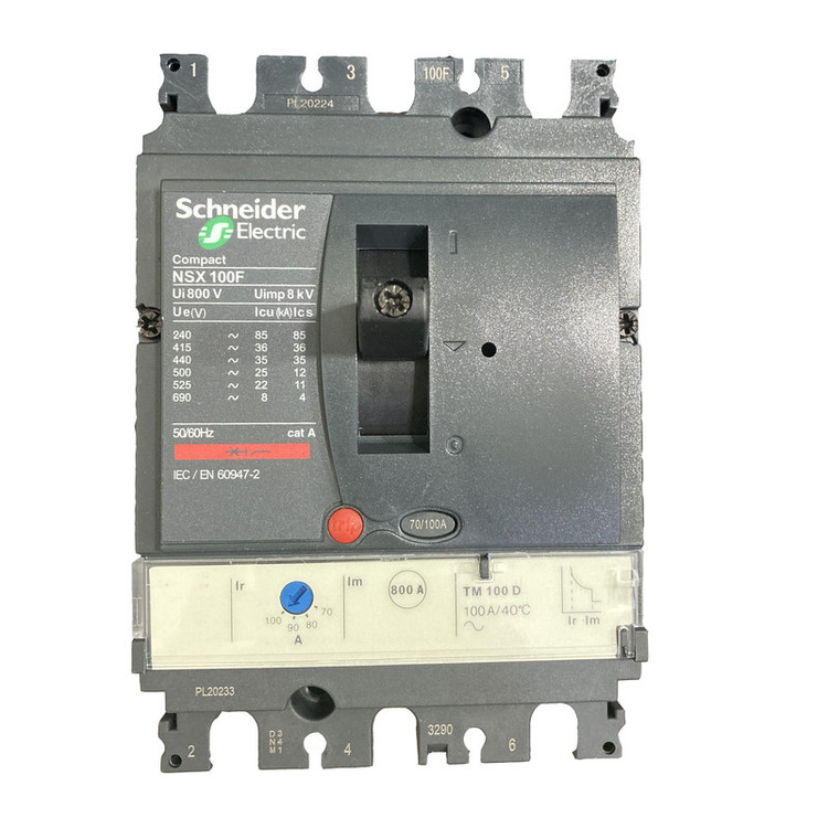 کلید اتوماتیک، اشنایدر 100 آمپر، قابل تنظیم حرارتی- ثابت مغناطیسی سری NSX با قدرت قطع 25 کیلو آمپر ، دارای حفاظت LI ، و یونت TM-D از نوع ترمال مگنتیک با قابلیت تنظیم جریان حرارتی می باشد ، ابعاد این کلید WHD 105x161x86 mm می باشد