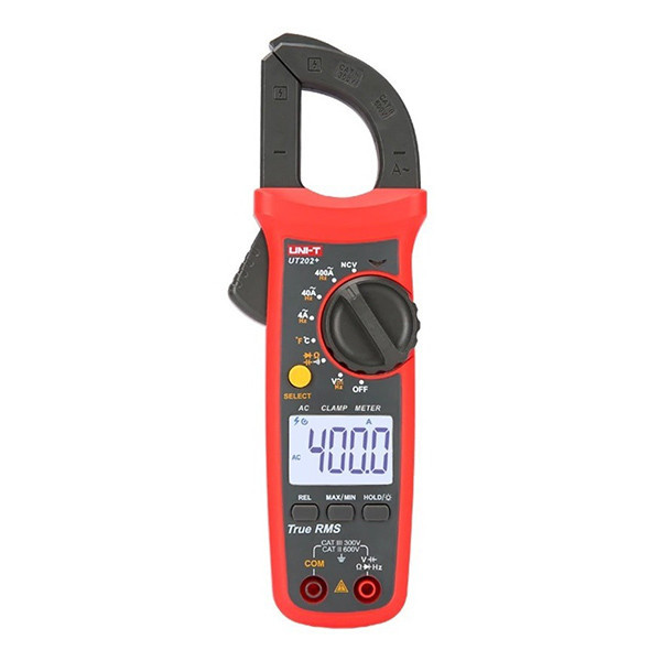 کلمپ آمپرمتر AC یونیتی مدل +UNI-T UT202 علاوه بر اندازه گیری ولتاژ AC/DC تا 600 ولت و جریان AC تا 400 آمپر میتواند به کمک پراب ترموکووپل دما را نیز اندازه گیری کند که وجه تمایز این مدل نسب به مدل UT201 نیز همین ویژگی است. در کلمپ آمپرمتر یونی تی 202 امکان اندازه گیری جریان بدون ایجاد قطعی در مدار به دلیل مدل کلمپی، کار را برای کاربر بسیار آسان کرده است، به نحوی که در زمانی کوتاه و فقط با قرار دادن سیم حامل جریان در چنگک و حفظ ایمنی کامل می توان مقدار جریان را اندازه گیری کرد. در واقع این کلمپ آمپرمتر یک مولتی متر به حساب می آید و می تواند علاوه بر اندازه گیری جریان، همچنین مقادیر مقاومت و ولتاژ را اندازه گیری نماید.