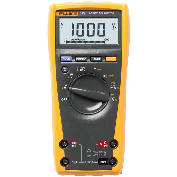 مولتی متر FLUKE 179 محصول شرکت FLUKE آمریکا دارای تمامی قابلیتهای لازم جهت تست مدارات و قطعات الکترونیکی می باشد. قابلیت تست دیود, تست خازن،اندازه گیری مقاومت و همچنین اندازه گیری جریان AC/DC تا 10A از امکانات این مولتی متر True RMS می باشد. کلیه ورودی ها در برابر اضافه ولتاژ یا اتصال اشتباهی پروب ها تا سقف 1000V محافظت شده اند. علاوه بر امکانات ذکر شده مولتی متر Fluke 179 توانائی اندازه گیری دما در محدوده رنجی -40 تا 400 درجه، و اندازه گیری فرکانس تا 100KHz را دارد. برای اندازه گیری دما این دستگاه از ترموکوپل نوع k با کد 80BK-A استفاده می کند که به همراه مولتی متر ارائه می گردد.100 % ساخت کشور آمریکا لازم به ذکر است کمپانی فلوک همانند خیلی ازبرندهای آمریکایی دیگر همانند اپل ، محصولات خود را در کشور های گوناگون اعم از آمریکا ، هلند ، تایلند ،چین ، .... تولید می کند ولی تمام محصولات تحت لیسانس و برندینگ کشور آمریکا می باشند.مولتی متر فلوک سری های 117 و 116 و115 ساخت کشور چین و تحت برندیگ و لیسانس کشور آمریکا می باشند وسری های 177 و 175 و 179 و 289 و 87v ساخت کشور آمریکا می باشند.لذا مشتریان محترمی که به دنبال مولتی متر های ساخت خود کشورآمریکا می باشند باید در سری های مولتی متر 177 و 175 و 179 و 289 و 87v جستجو کنند.