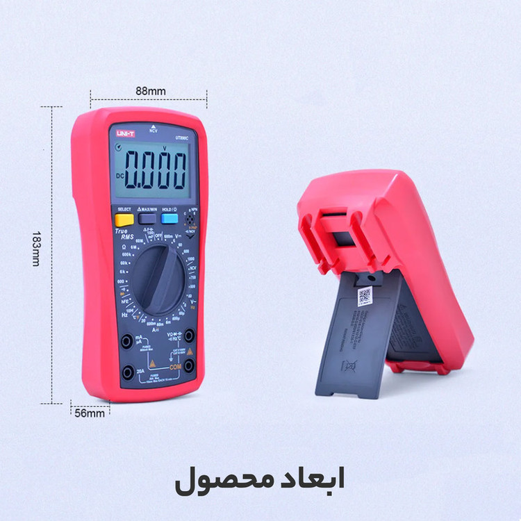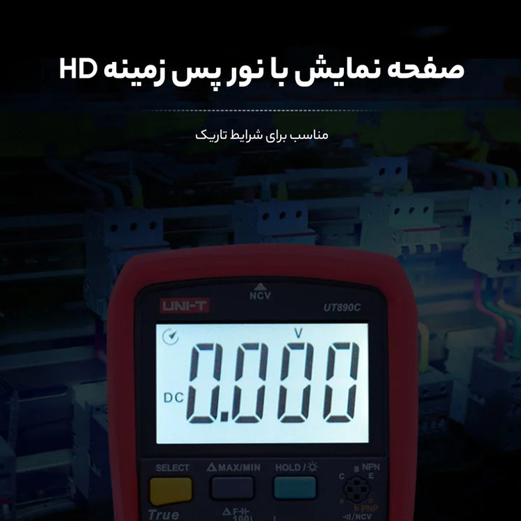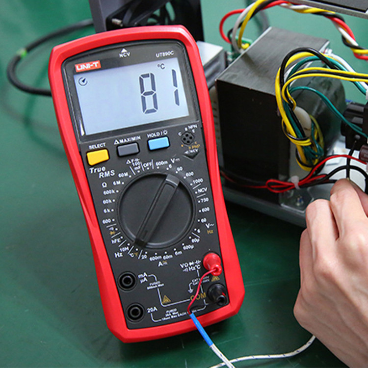 مولتی متر صنعتی یونیتی UNIT UT890C دارای LCD بزرگی است که توانایی نمایش اعداد تا 6000 را دارد که کل رنج اندازه گیری را پوشش می دهد. کاربر بنا بر نیاز خود، رنج را به صورت دستی تنظیم می کند. علاوه بر این، دارای محدوده تست NCV و ترانزیستور hFE است. این آوومتر توانایی اندازه گیری TRUE RMS را دارد . همچنین میتواند تست دیودی و پیوستگی را نیز انجام دهد. هنگامی که فیوز ولت متر دچار مشکل می شود، بوسیله هشدار به کاربر اطلاع داده می شود. همچنین دارای هشدار اضافه جریان هنگامی که جریان از 20 آمپر فراتر می رود را دارد. هنگامی که باتری کم می شود، این ولت متر نمایش می دهد و برای صرفه جویی در مصرف باتری، زمانی که 15 دقیقه مورد استفاده قرار نگیرد، خاموش می شود. برای استفاده در محیط های تاریک دارای نور پس زمینه است. همچنین توانایی نمایش حداقل و حداکثر ولتاژ وجریان وتوانایی ثابت نگه داشتن اطلاعات را دارد. یکی از ویژگی های مهم، اندازه گیری دما است که میتواند دما را در رنج -40 تا 1000 درجه سانتیگراد محاسبه کند. این ولت متر، ولتاژ ثابت را تا 1000 ولت، ولتاژ متناوب را تا 750 ولت، فرکانسACV را تا 10 کیلوهرتز، جریان ثابت و متناوب را تا 20 آمپر، مقاومت را تا 60 مگا اهم، خازن را تا 100 میلی فاراد و فرکانس را تا 9.999 مگاهرتز اندازه میگیرد.