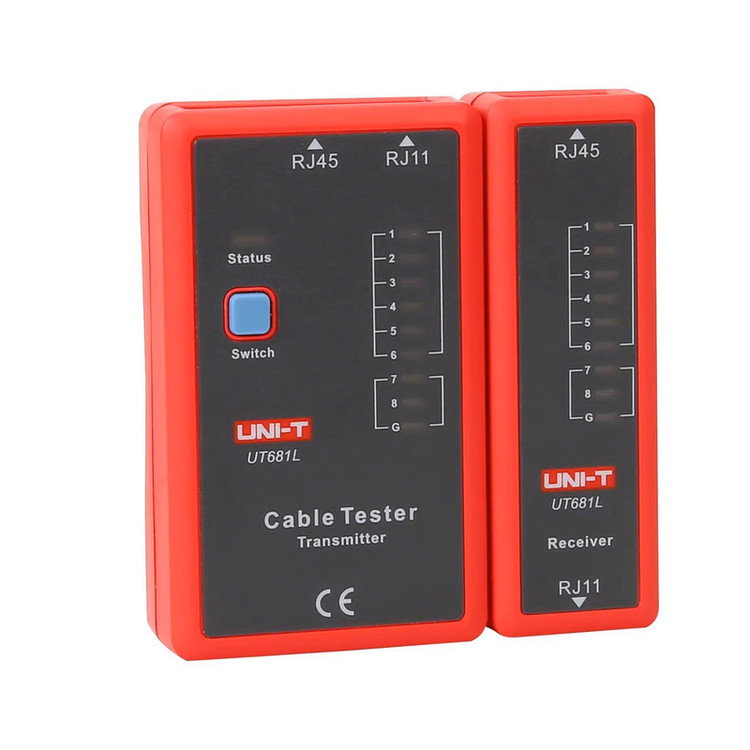 تستر شبکه یونی - تی مدل UT681l برای تست کابل شبکه RJ11 و RJ45 کاربرد گسترده دارد .تستر شبکه یونیتی دارای نشانگر وضعیت LED ، بررسی خودکار وضعیت مدار باز و مدار اتصال کوتاه ،قابلیت خاموشی خودکار ، نشانگر وضعیت باتری کم از امکانات این تستر شبکه می باشد.
