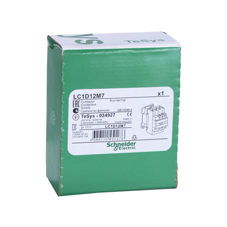 این کنتاکتور قابل بهره برداری در مصارف با استانداردهای AC-1، AC-3 و AC-4 و AC-3e است. مطابق با استاندارد AC-3 جریان کاری این کنتاکتور، 12 آمپر و ولتاژ کنترلی یا ولتاژ تغذیه بوبین، 220 ولت AC است. رنج ولتاژ عملکردی این کنتاکتور برای مدار قدرت در حالت DC برابر با 300 ولت و در حالت AC برابر با 690 ولت در رنج فرکانسی 25 تا 400 هرتز است