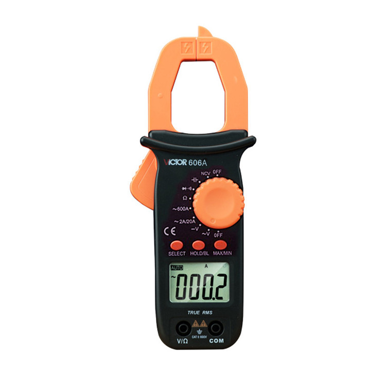 کلمپ آمپرمتر ویکتور 606A با قابلیت سنجش جریان مستقیم و متناوب تا 600 آمپر و قیمت منصفانه ای که دارد یکی از محبوب ترین کلمپ آمپرمترهای حال حاضر بازار می باشد . از مزایای این کلمپ آمپرمتر فک بزرگ و منعطف آن میباشد که در مکان هایی که دسترسی سختی برای اندازه گیری وجود دارد سنجش به آسانی انجام پذیرد . کلمپ آمپرمتر ویکتور 606A از طریق پراب قادر به اندازه گیری مقاومت اهمی ، تست دیود ، فرکانس ، ظرفیت خازنی ، دمای محیط و ... می باشد .