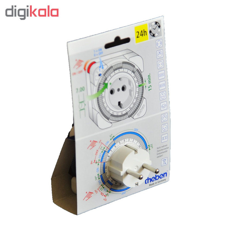 تایمر 24 ساعته پریزی تبن ( THEBEN ) محصول کشور آلمان میباشد. این تایمر قطع و وصل خودکار برق (همانگونه که از ناماش پیداست) در واقع یک دستگاه زمانسنج است که میتواند در ساعات و دقیقههای مشخص که شما تعیین میکنید جریان برق را قطع یا وصل کند. بهسخن دیگر این دستگاه را شاید بتوان یک پریز برق تایمردار نامید. یعنی در طول 24 ساعت شبانه روز باتوجه به امکانات تایمر شما میتوانید برای نمونه برنامهریزی کنید که دستگاه، برق مورد نظر شما در ساعت 3 نیمه شب روشن شود و در ساعت 4.30 دقیقه بامداد برای حدود 2 ساعت خاموش شود و دوباره در ساعت 6.30 دقیقه صبح روشن شود. این شیوه از برنامهریزی و تنظیم تایمر در طول 24 ساعت شبانهروز امکان پذیر است. محصول فوق برای مصارف مختلفی طراحی و ساخته شده که برخی از آنها عبارتند از: لوازم برقی داخل آشپزخانه،آکواریوم،پکیج،پمپهای آب و سایر مصارفی که نیاز به کنترل تحت زمان خاصی دارند. مواد اولیه به کار رفته در ساخت محصول فوق بسیار با کیفیت می باشد.